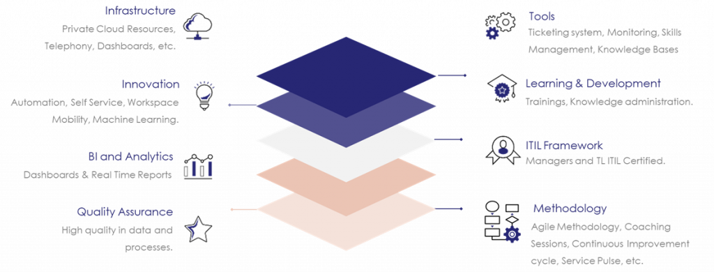 We have the experience, not only to provide services but the infrastructure, tools, processes, methodologies, frameworks and operational/delivery governance. This allow us to propose the best practices adapted to our clients business needs.